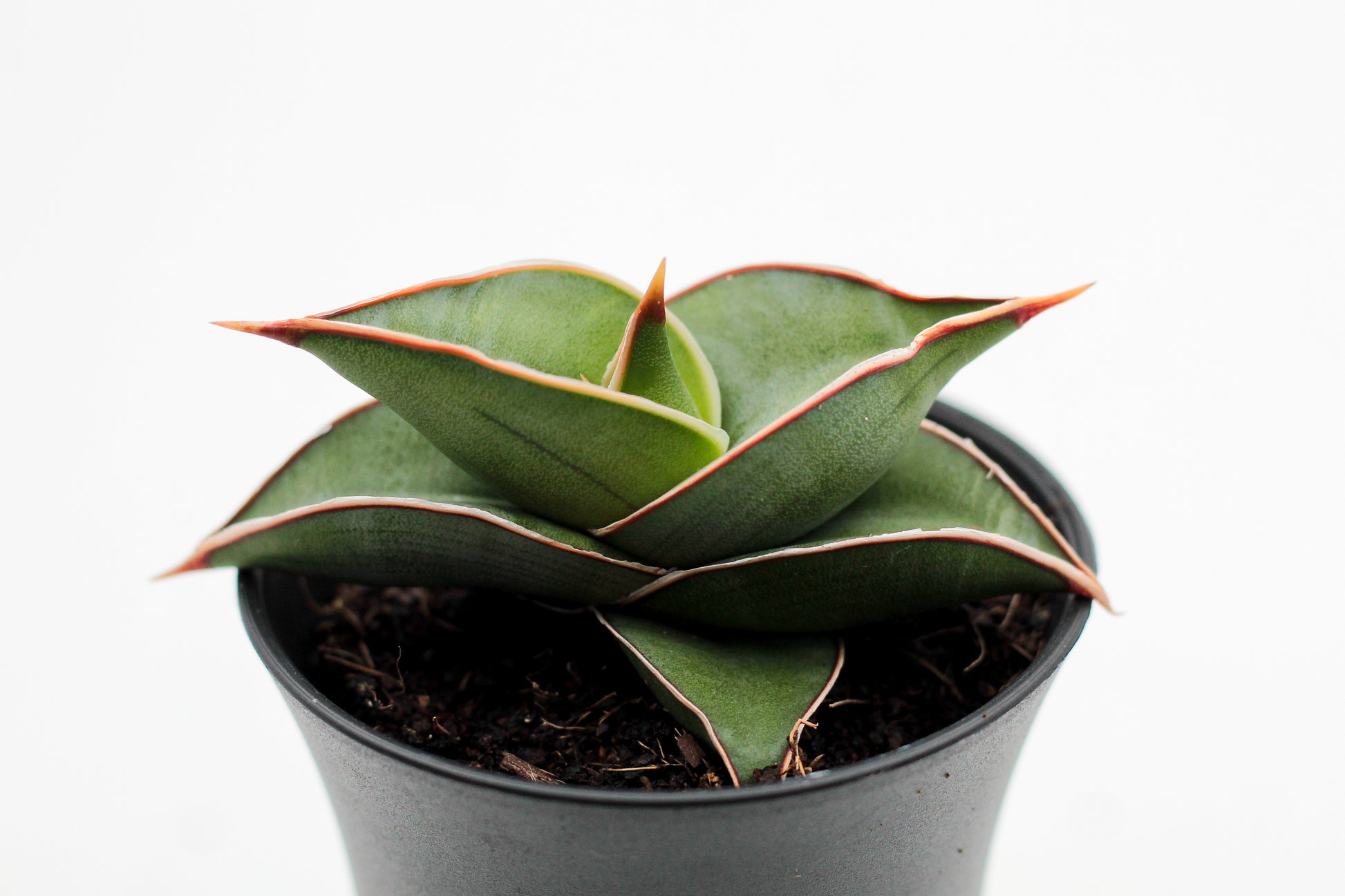 De Sansevieria Almond Silver Sweet is een prachtige Sansevieria hybride. Ze maakt compacte dikke bladeren die in paren tegenover elkaar groeien. De bladeren hebben een donkergroene kleur en een bruine rand. Over de bladeren komt na verloop van tijd een mooie grijze tot zilvergrijze gloed. Deze Sweet variant van de Sansevieria Almond Silver heeft een kleinere en compacte groeiwijze.