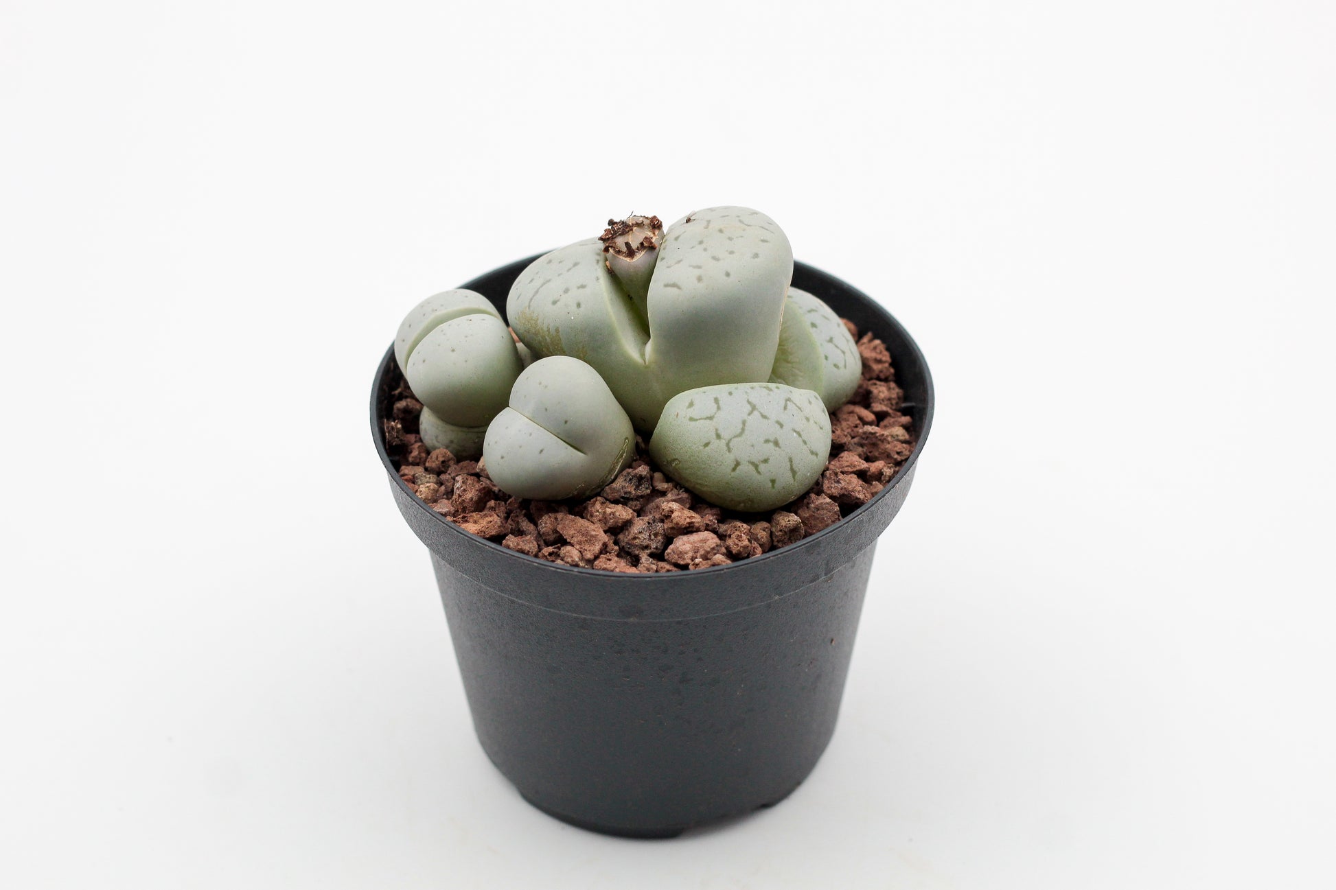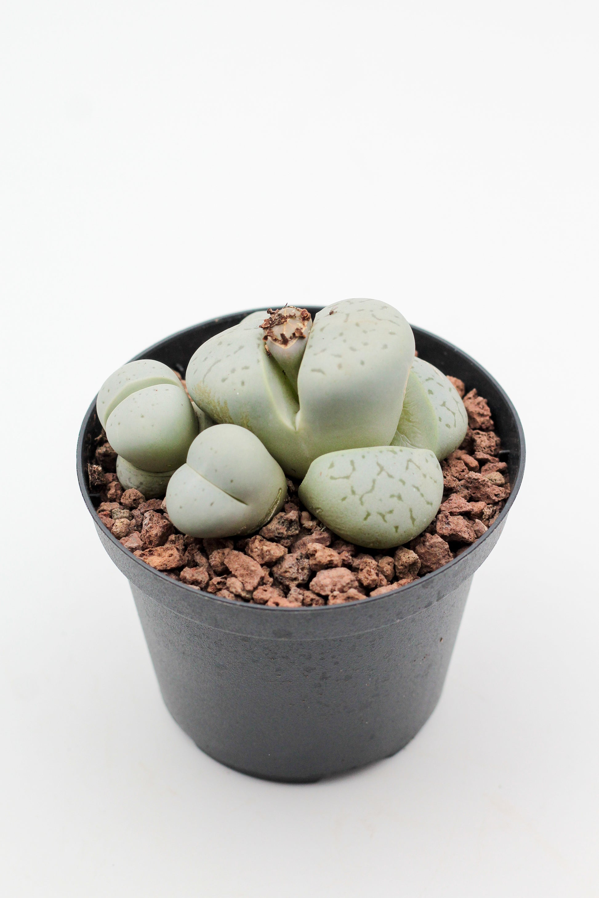 Terug van weggeweest, de Dinteranthus vanzylii. Dit is een bijzondere plant die we zelden aangeboden krijgen. De Dinteranthus vanzylii komt in de natuur voor in de kaapprovincie van Zuid-Afrika. Hier groeit ze op droge vlaktes met zand en gravelstenen.